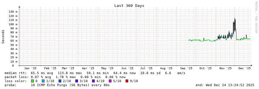 traceroute to 5.158.0.1 (5.158.0.1), 30 hops max, 60 byte packets - Generated at 2025-12-24 11:15:01