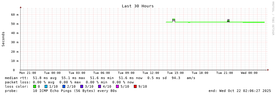 traceroute to 5.181.25.27 (5.181.25.27), 30 hops max, 60 byte packets - Generated at 2025-10-22 01:00:01