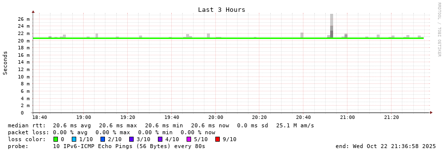 8 > 2a0c:9a40:8610:e3f::1 (2a0c:9a40:8610:e3f::1) [AS215362] 20.607ms 20.710ms 20.670ms