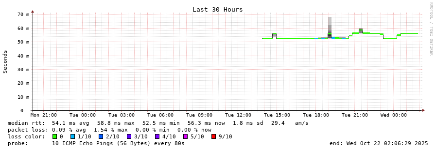 traceroute to 185.45.15.70 (185.45.15.70), 30 hops max, 60 byte packets - Generated at 2025-10-22 01:00:01