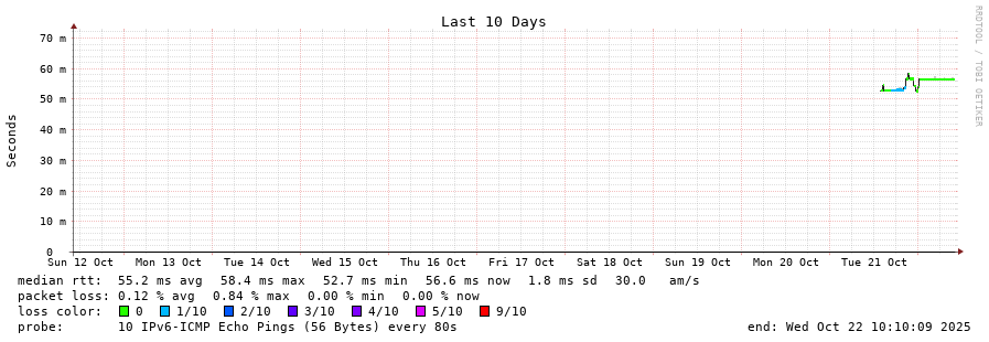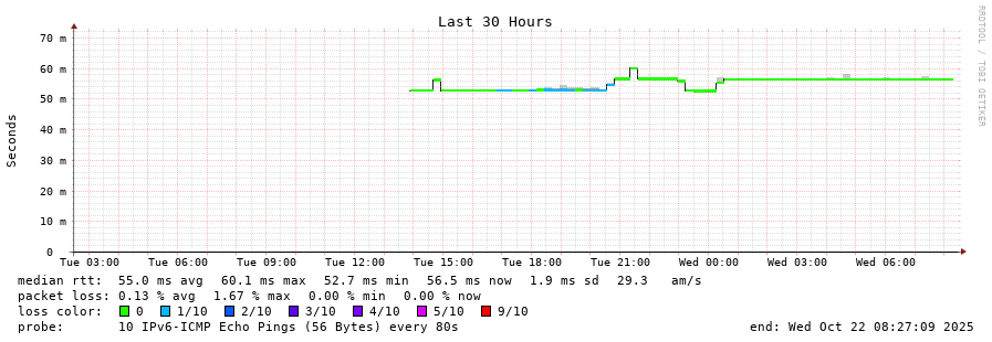 traceroute to 2a04:9dc0:0:a51::afaf:1 (2a04:9dc0:0:a51::afaf:1), 30 hops max, 80 byte packets - Generated at 2025-10-22 01:00:01