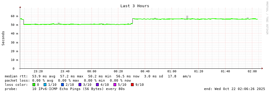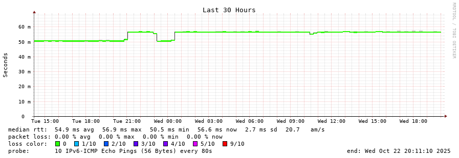 traceroute to 2a02:2f05:2113:7f00:220:4aff:fee0:220f (2a02:2f05:2113:7f00:220:4aff:fee0:220f), 30 hops max, 80 byte packets - Generated at 2025-10-22 01:00:01