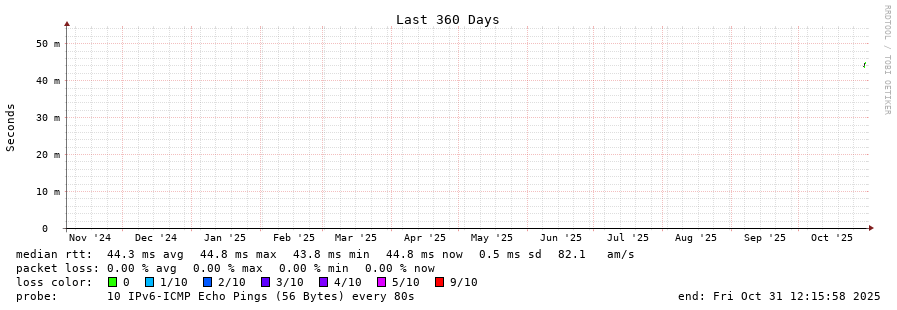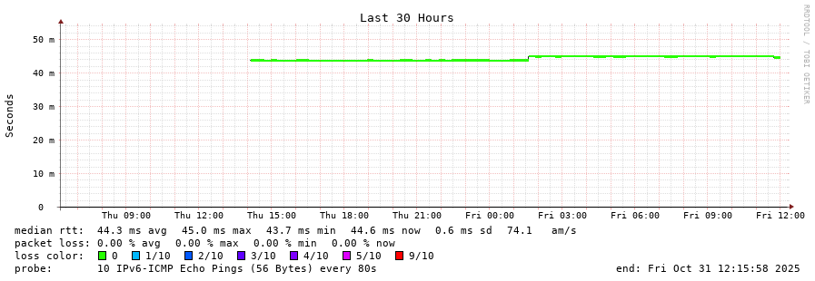 traceroute to 2001:41d0:302:1000::18:665e (2001:41d0:302:1000::18:665e), 30 hops max, 80 byte packets - Generated at 2025-10-31 08:00:01