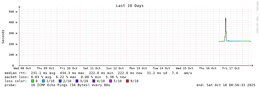 7 > 89.221.41.127 (89.221.41.127) [AS6762] 135.780ms 135.770ms 135.823ms
